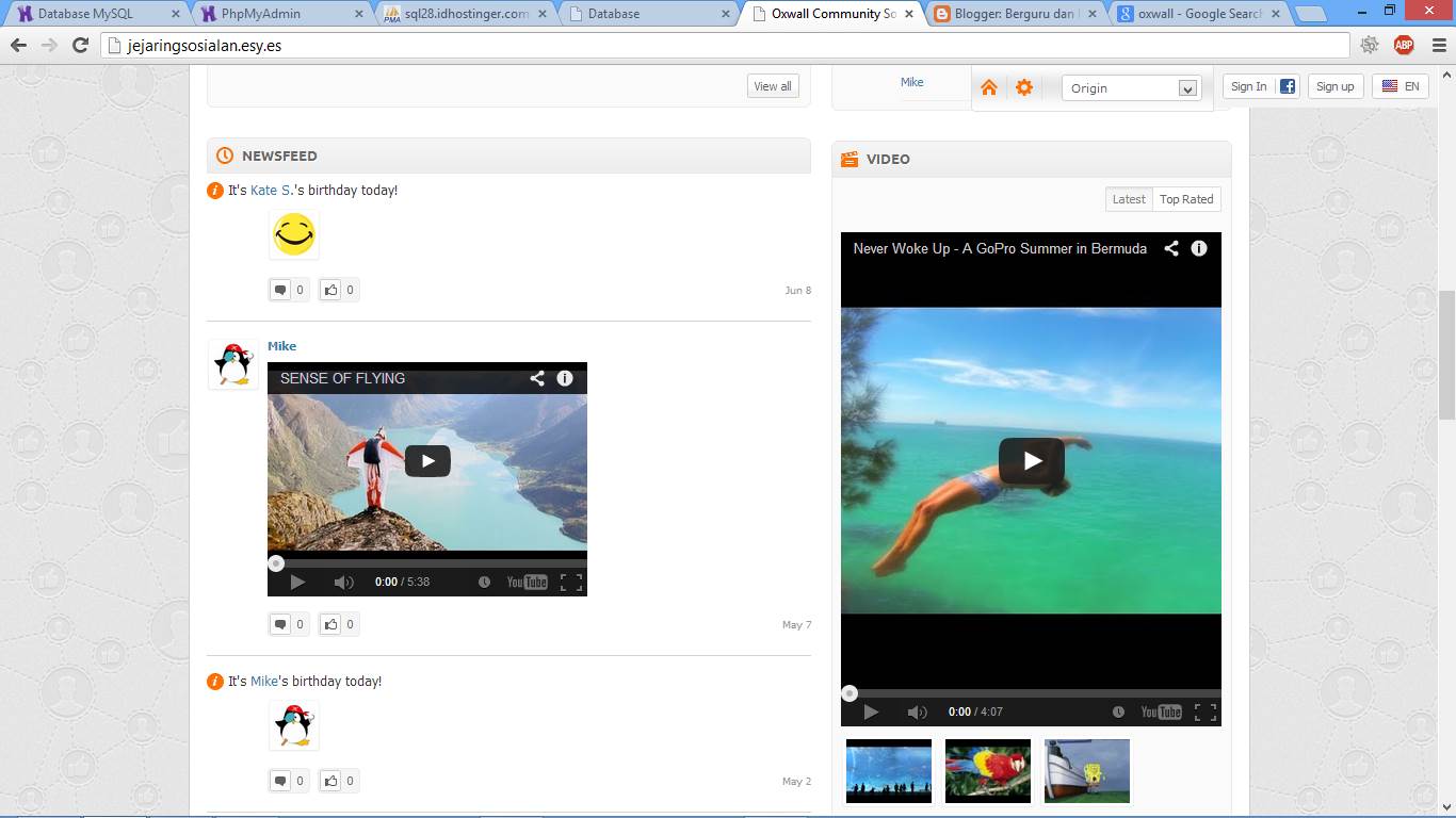 Jika Anda sukses dalam menyetting database, maka situs jejaring sosial Anda sudah berhasil dibuat, sekarang coba kunjungi situs Anda tersebut, dan lihat hasilnya.